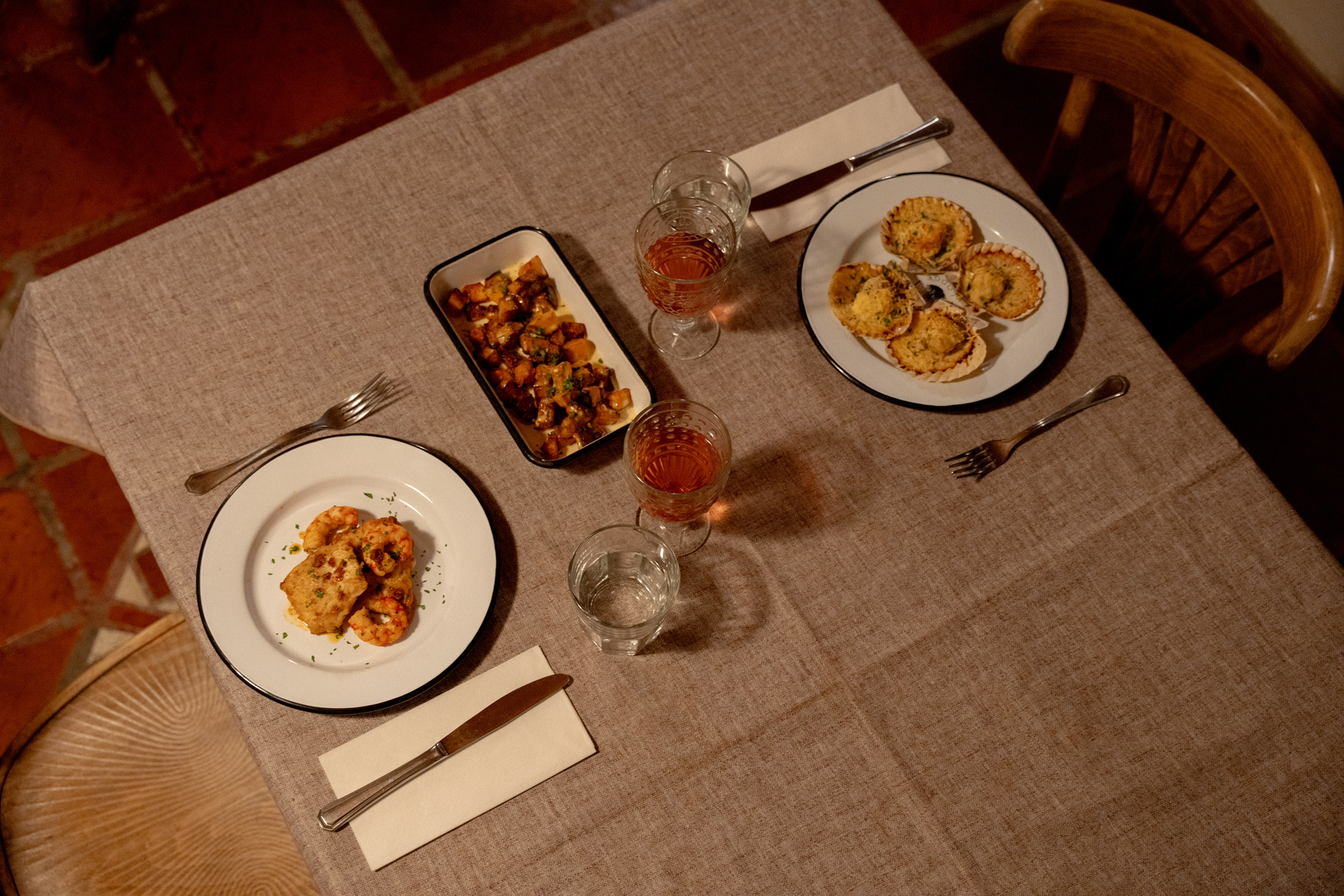 Con ambiente distendido y relajado con platos que contemplen en primer lugar los productos regionales implementados en preparaciones clásicas. Resaltando sus sabores, logrando no invadir la esencia de cada uno.